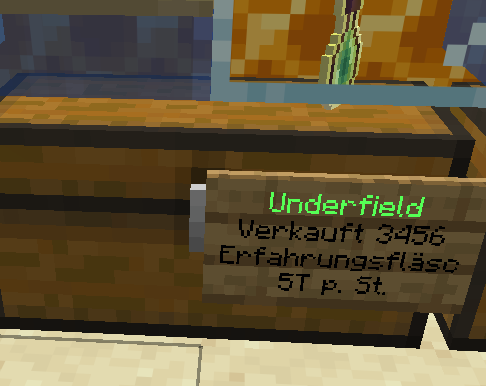 folgendes im Chat eingeben /shop create (Betrag) und dann die Kiste anklicken. Nun erscheint dort ein Schild. Das zum Beispiel so aussieht,